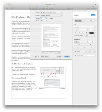 Here, at the left, the Print dialog box of 'Pages' layout application.