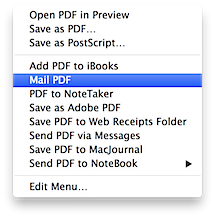 Last comes the possibility to send it to someone by mail. The Mail application opens automatically a new message window and your document is already attached to it.